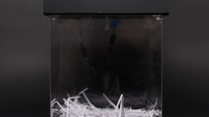 The shredded paper is not discarded — it becomes the material that diffuses the light.